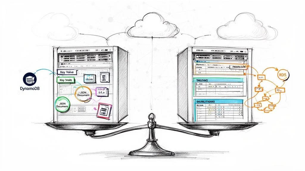 This stark contrast in data modeling and query flexibility is the central issue in the DynamoDB vs. RDS comparison. Making the right choice is all about aligning your application's data structure and access needs with the fundamental philosophy of the database you choose.