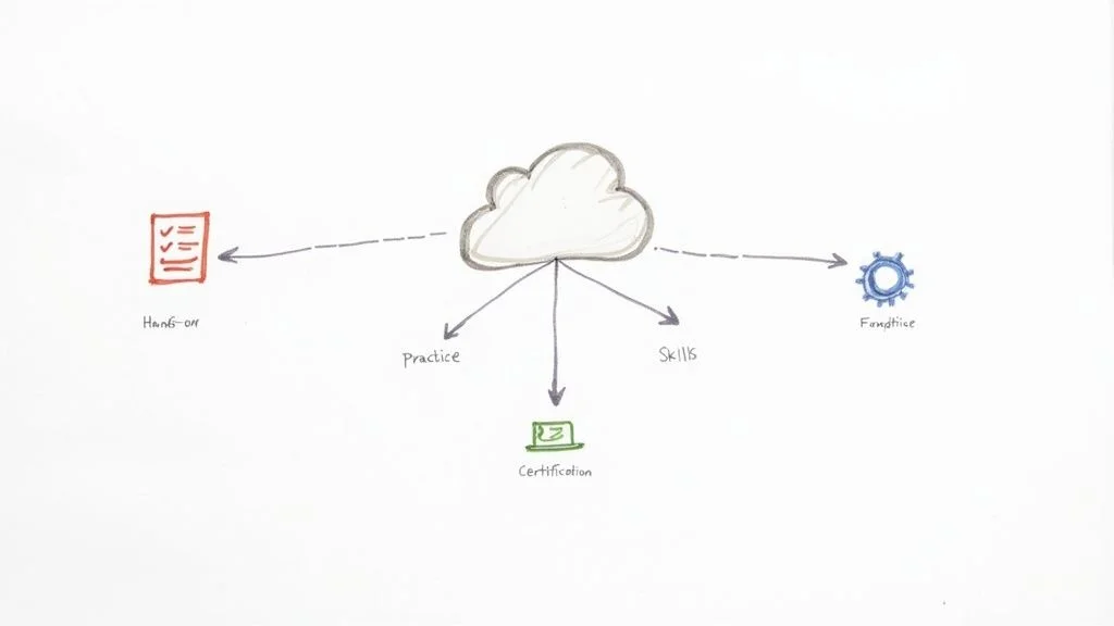 Breaking into the world of cloud computing can feel like a daunting climb, but it's a journey with a clear, well-defined path. At MindMesh Academy, we understand the challenges IT professionals face when trying to navigate this rapidly evolving landscape. The truth is, success in the cloud hinges on three crucial phases: establishing a robust foundation in core IT principles, gaining practical experience with a leading cloud platform, and finally, validating your expertise with industry-recognized certifications.